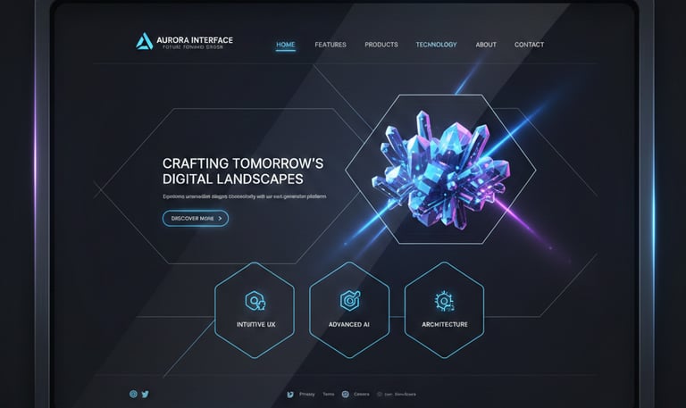 A modern, cutting-edge website design featuring sharp, clean lines, subtle glowing accents, and a premium aesthetic that embodies contemporary digital trends.